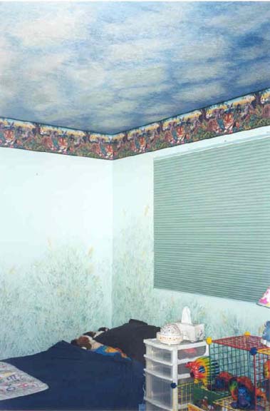 Lisa painted Alex's room with a jungle theme and put up a jungle border.